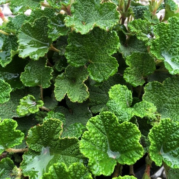 Thick leaves are leathery and coarse-textured. But they are quite charming, with their rounded lobes and slightly ruffled margins.
