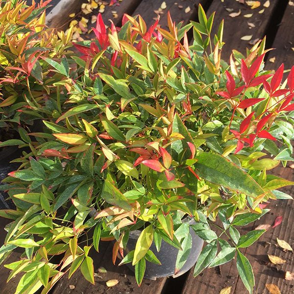 These highly adaptable shrubs are easy to care for and grow! The Moon Bay Heavenly Bamboo will be happy in a full-sun or partial-sun location but appreciate shaded conditions in hotter growing zones, especially shade in the afternoon. Nandina must have well-drained soil of any kind. Water your Heavenly Bamboo plant regularly just like any other plant. If you're unsure, you can test the soil by feeling it with your pointer finger near the base of the plant. If it is moist, don't water it. If it's dry, give it a good soak! Add 3-4 inches of arborist mulch over the root system to keep it cool and hold moisture in more consistently.
