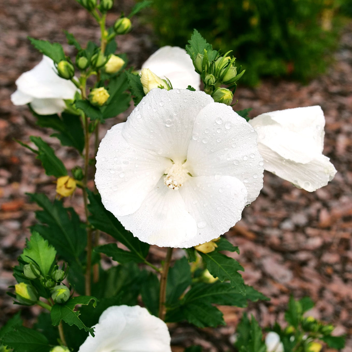 Growing with a graceful, upright habit, this Rose of Sharon is as functional as it is beautiful. Reaching a mature height of up to 8 feet, it serves as a spectacular flowering hedge or privacy screen that defines property lines with style. Because the white blooms stand out so vividly in low light, it is a premier choice for "Moon Gardens," where the flowers catch the moonlight for a magical evening experience. Use it as a standalone specimen near a patio, or plant it as a high-impact foundation plant to add vertical interest and seasonal texture to your home's exterior.