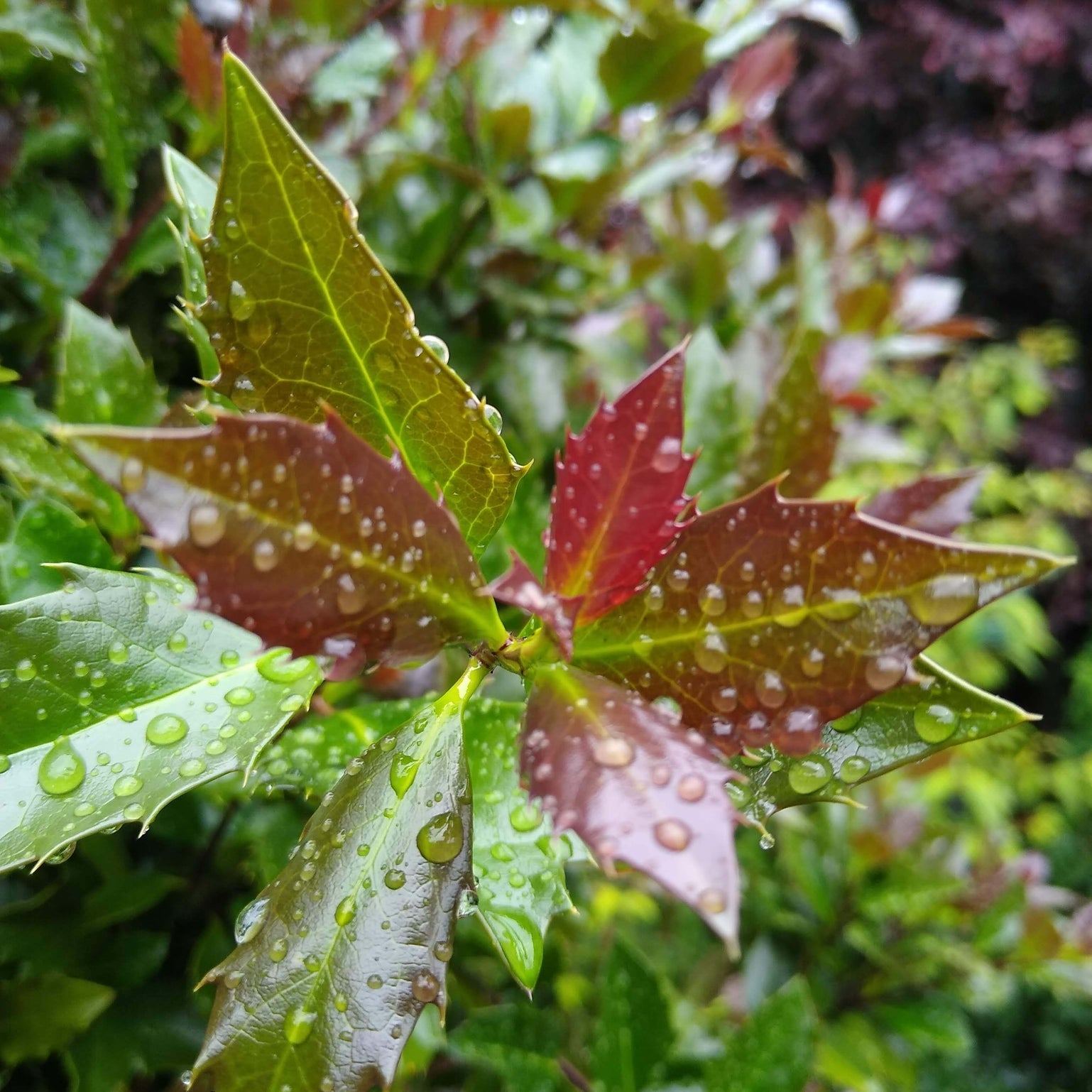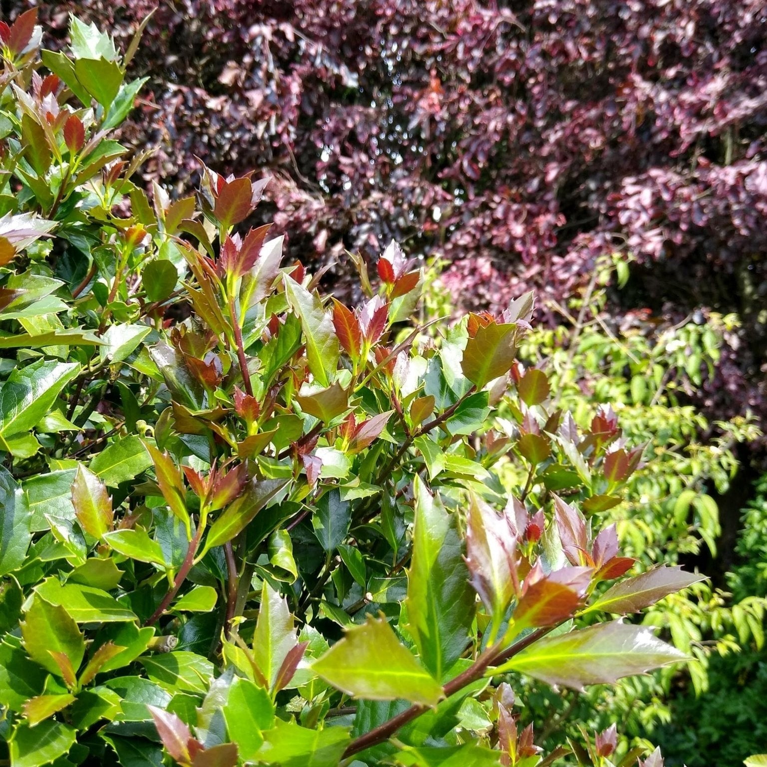 - Dramatic burgundy-red new growth turns dark green, then returns burgundy in winter
