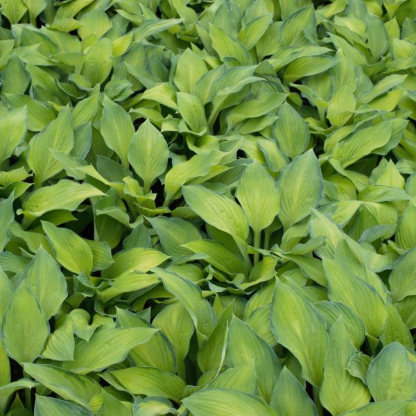 Loving the shade that larger trees and shrubs create, a skirt or ring of Hosta around their bases adds a finishing touch to your plantings while hiding their bare leggy lower stems as lush facer plants. Mix with other Hosta leaf colors, create a cool background structure, or highlight shrubs and trees with this unique coloration!