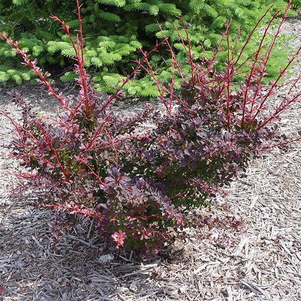 Rose Glow Barberry can stand on its own as a beautiful specimen plant or garden accent. Its color looks fantastic among other shrubs or perennials with burgundy, rose, pink, red, and purple flowers or foliage!