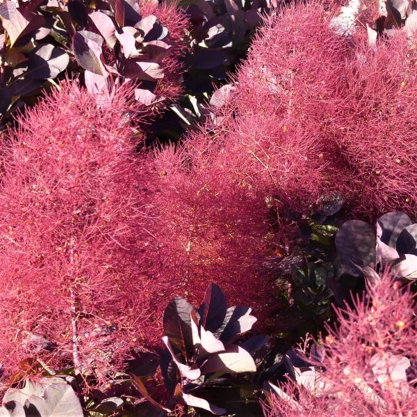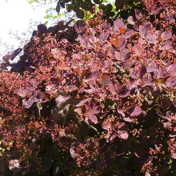 While the Cooke's Purple™ Smoke Tree's foliage is remarkable, so are its summer blooms. Its dainty flowers puff upward and outward in plumes of smoke-like clusters. These delightful blooms are bright red with hints of pink and violet and look like they were pulled from a Dr. Seuss book. These wonderful puffs have a pleasant floral scent that will greet you when you arrive home or wake up in the morning to step out for your morning paper!