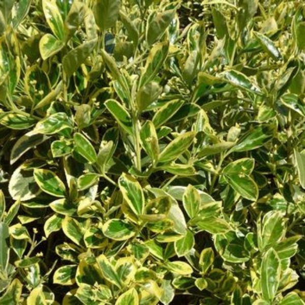 With cool-toned, irregular white margins on glossy green leaves, you'll never grow tired of this elegant, year-round display! The natural growth is an upright vase shape in the early years, then it mounds naturally. It stays full and dense all the way to the ground.