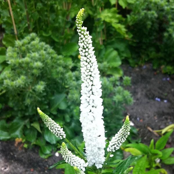Flowering from the bottom up First Lady Veronica are regal-looking blooms! You'll truly appreciate the dark green foliage clumps before and after these blooms arrive on the scene. Then when the dreamy white ""candles"" arrive, they wave in fluffy spires above glossy green leaves with lovely toothy edges. The flower spikes appear all summer and provide you with lovely cut flowers for your bouquets.