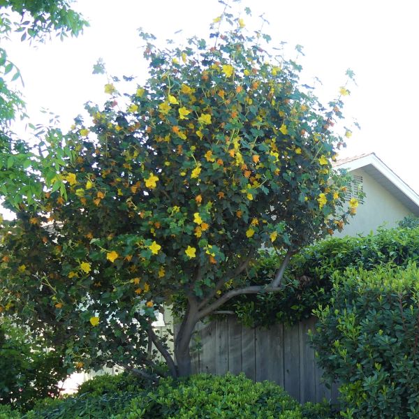 We've heard rumors that you can espalier Flannel Bush (Fremontodendron californicum) to run along a garden wall, but we'd advise you just let it do its thing. There's a good reason. Flannel bush comes armored.