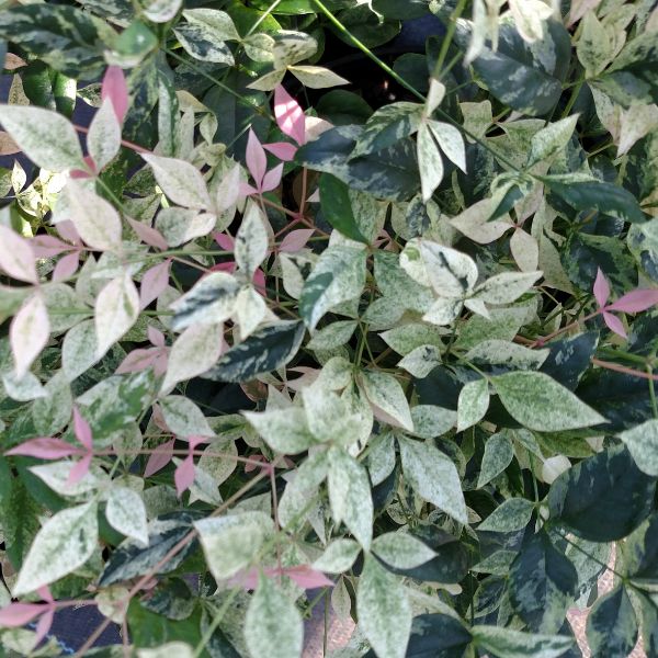 They are heat-hardy and broadleaf evergreen year-round, though they are so much more than 'green'! Typically they are known for their deep green leaves that change to fiery reds and golds as new growth emerges, but Twilight Nandina bucks this trend and adds a fine variegated elegance to your garden with pinkish bronze new growth that becomes light green leaves mottled with ice-white.