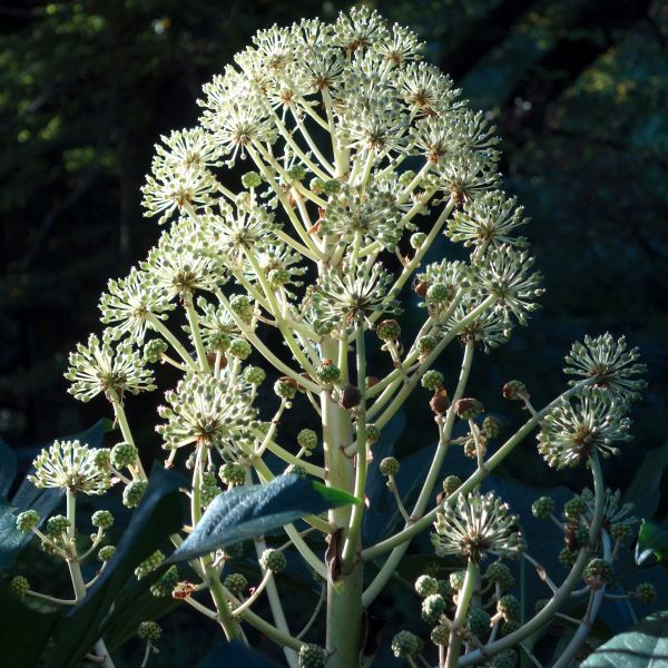 It has a spreading nature and can be grown as a shrub or tree, depending upon pruning (which will determine its height). Fatsia Japonica has a hardy nature, is tolerant of shade and even does well indoors (either as a plant or cut for floral arrangements).