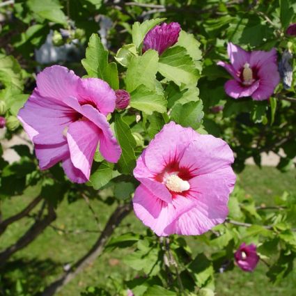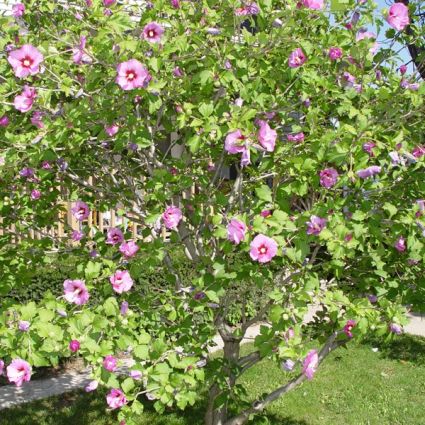 Plant several Althea as a hedge along your house or outbuilding, or group a few at the edge of a perennial bed for a tall, eye-catching splash of color. The open and airy branching is light and lively, but compact enough to still give you plenty of screening, and create the "living walls" of a garden room. Add as backdrops to Perennial and Rose gardens, as property-defining hedges, and both country and tropical-looking privacy!