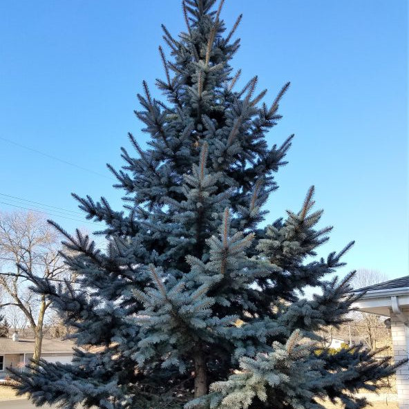 It is just as striking in the winter as it is in the summer - maybe more so - since it sparkles covered in snow or next to brown, bare branches! Like all Spruce trees, Colorado Blues are hardy and cold-tolerant throughout USDA planting zones 3 - 8, these blue-gray trees won't fade or change color in the heat of summer or the chill of winter!