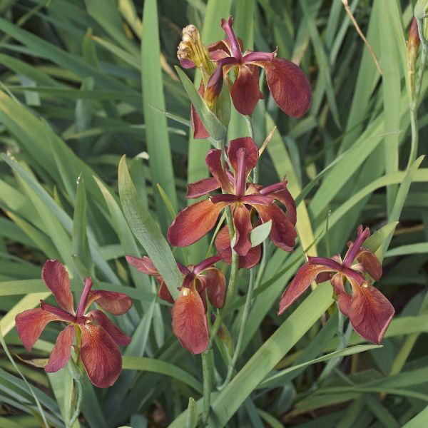 Not your typical Iris, the unique native flowering perennial, Copper Iris (Iris fulva) features showy coppery red to orange petals! Not only is the color unique, but the open drooping petals and spreading sepals really set this Iris apart from the rest! Each petal has a dab of gold, and the hue of these flowers can vary slightly because of their native diversity, but we guarantee each will be stunning!