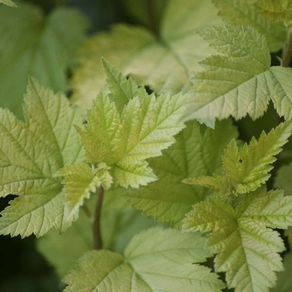 The Nugget Ninebark, Physocarpus opulifolius 'Nugget', is a dense compact shrub of low to medium size and texture. Its foliage is a deep golden yellow with a hint of bronze on new growth. Nugget is quick to establish. New growth is a deep golden yellow, turning lime green at maturity.