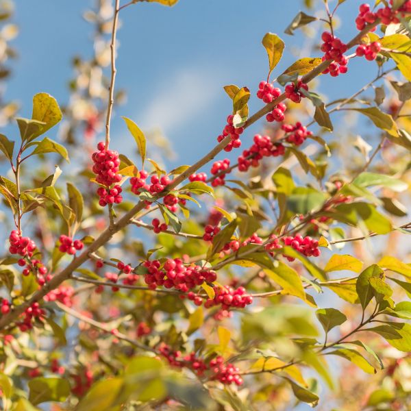Easy to grow, these native shrubs Holly need full sun and well-drained moist soil. Deciduous Holly bushes are adaptable and tolerate a wide range of environments! Mulch the root system well in colder USDA growing zones 5 to 9 and in drier conditions, and provide supplemental moisture during harsh conditions. Prune after flowering to control size and keep the shrubs tidier if desired. Deer seldom damage the native Possomhaw Holly shrub and find other things to nibble on unless they’re truly desperate!