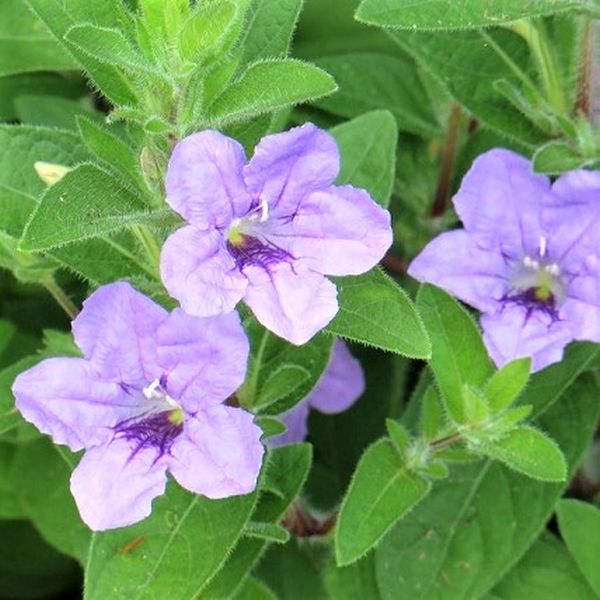 The flowers bloom among the plethora of light green leaves that have a unique characteristic. The leaves are covered in a thin layer of short hair. This gives Wild Petunia a rather fuzzy appearance!