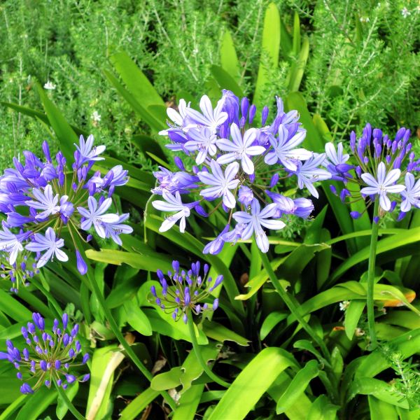 These little guys are excellent in containers and perfect for rock gardens. They are little workhorses and will fit into borders or beds with ease. They make great punctuation points amongst evergreen shrubs. They fit into just about any garden style from modern to traditional to beachy to exotic. You've never seen anything quite as beautiful as a row of Dwarf Agapanthus in full bloom against a white picket fence. These are also one of the most perfect plants ever for planting around a swimming pool. No mess and no pruning!