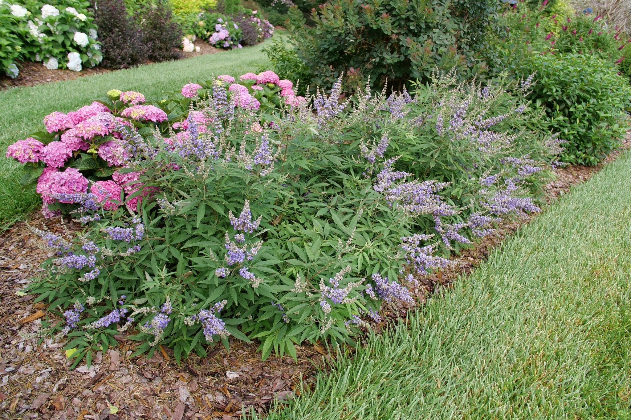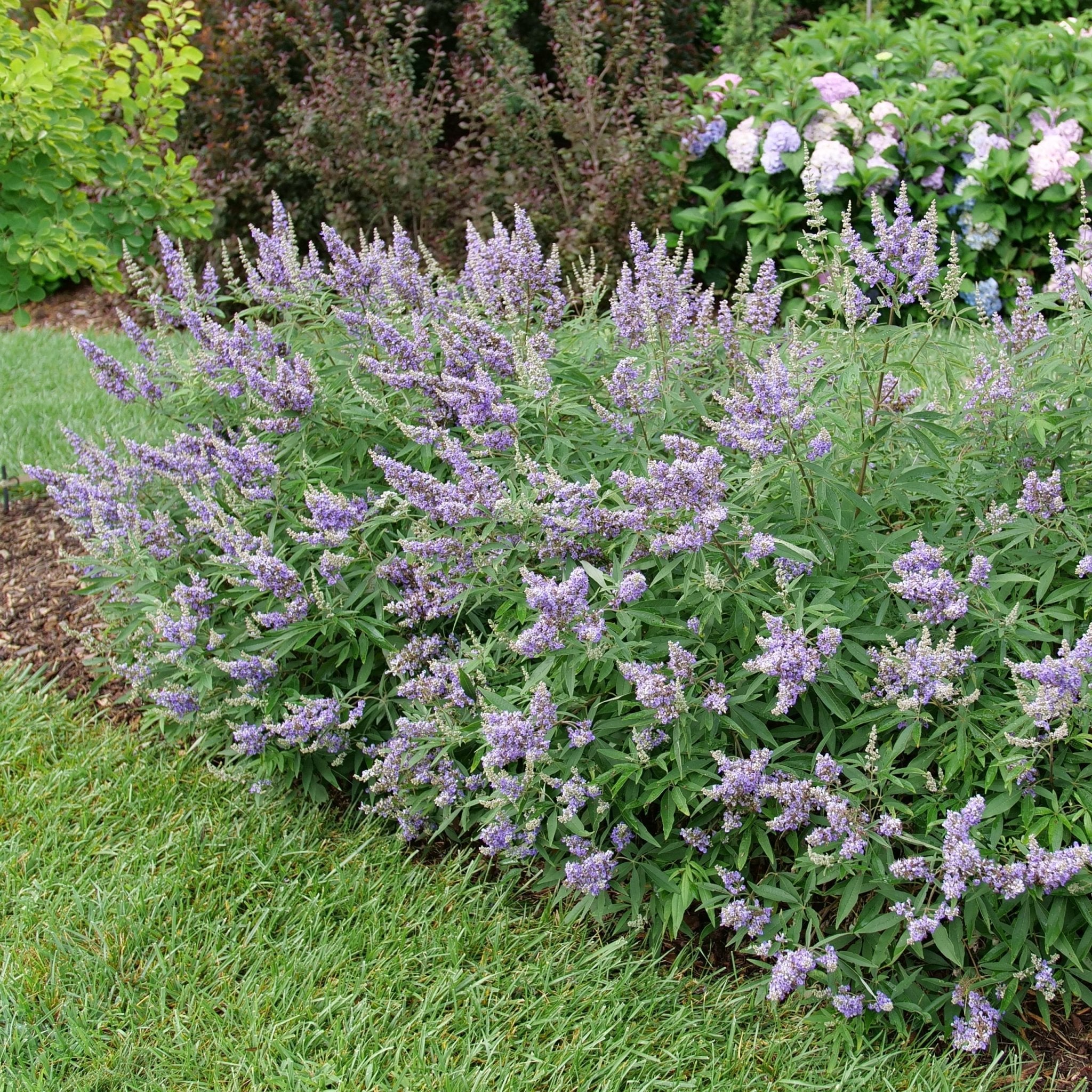 Plant Rock Steady Chaste Tree in full sun in well-drained soil for maximum flowering and vigor. This heat- and drought-tolerant shrub thrives in the hottest, driest spots in the garden where other flowering shrubs struggle. Water during establishment, then reduce as it becomes self-sufficient. In colder zones (5–6) it may die back to the ground in winter but will re-sprout from the roots in spring, prune back dead growth in early spring. No deadheading is needed; the continuous bloom cycle takes care of itself. Exceptional for xeriscape, cottage, and pollinator-garden designs.