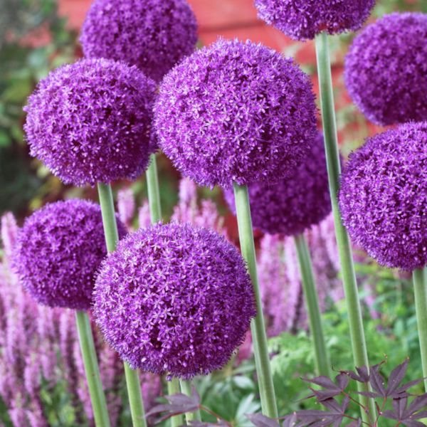 Once the blooms fade, its spunky seedhead remains. Create a fun garden by spray painting these seed heads in colorful paint to create unique garden 'art'! Plus Ambassador Allium is an absolute must for Rock gardens, Cottage gardens, or gardens where children play and learn. Make a statement by lining the path to your door with Alliums, your guests will feel like they entered a fantasy land! Allium are of course one-of-a-kind floral bouquet specimens! They also make a perfect purple focal point when planted as a middle border or in a cottage garden!