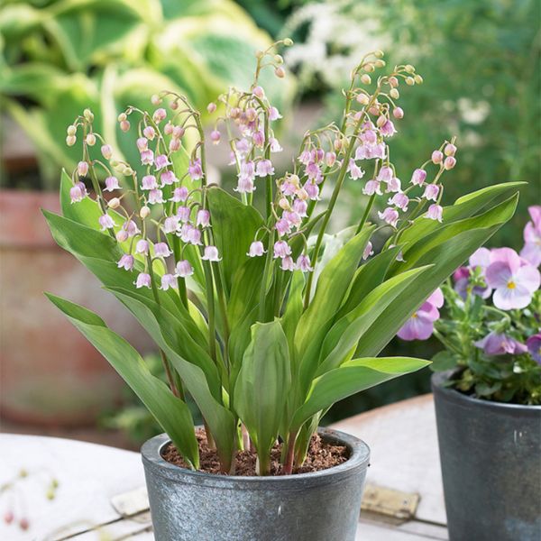 Pink Lily Of The Valley can be kept within bounds by planting in a sunken container, or collar or can be planted in shady planters around the landscape. Otherwise, these perennial rhizomes fill in any tight area that needs to be filled, or bare spots in the dappled shade of larger trees and shrubs, are all perfect for these fragrant blooms! Plant among your shady bulb gardens, and around other perennials to act as living mulch and groundcover!