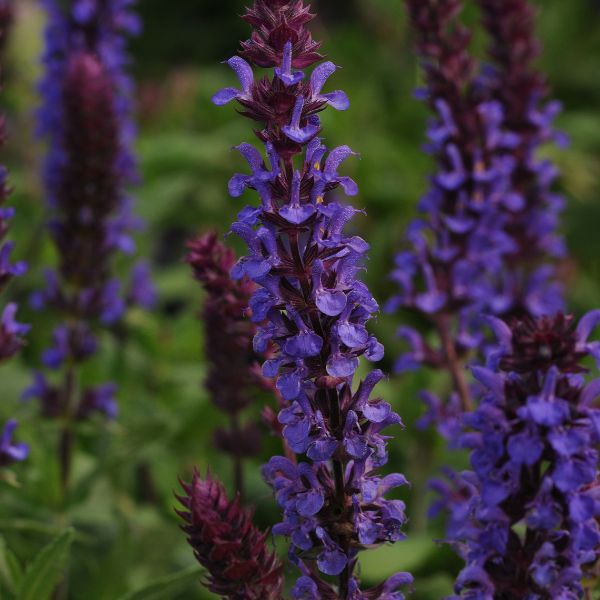 Blue Salvia is intensely saturated with dark blooms and stems, and adds depth and drama to the garden border and perennial garden bed! Tuck these little jewel-tone gems into your Cottage garden and along walkways and driveways where brushing past them will fill the air. Hardy enough for Rock Gardens and that hell strip along the road or sidewalk too!