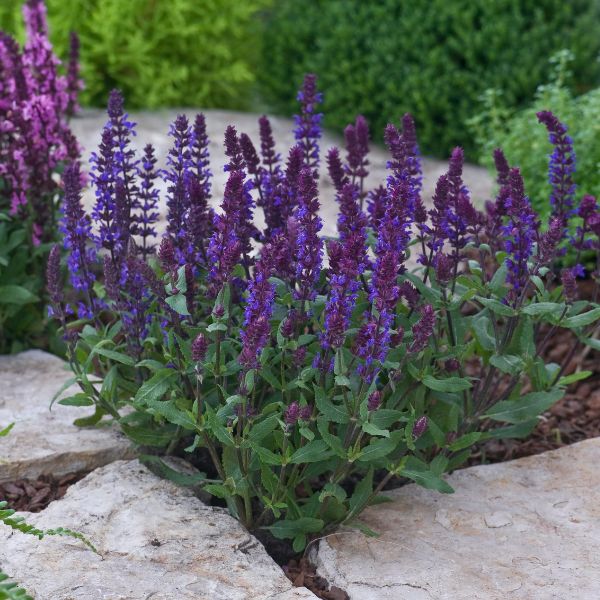New Dimension™ Perennial Sage are cold-hardy throughout USDA growing zones 4 to 8 and grow to a short 8-10 inches when in bloom, while spreading to a neat and tidy mound 10-12 inches in width! These long-lasting ornamental perennials will rebloom if you keep deadheading throughout the growing season!