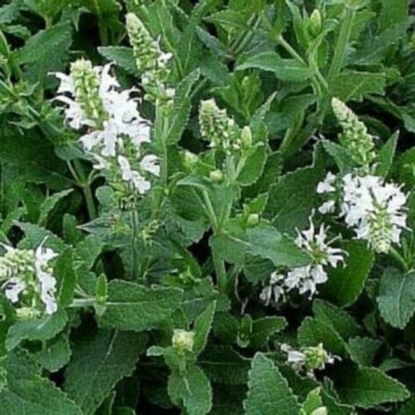 The hybrid Salvia Snow Hill is a real show stopper with its lovely white flowers that won't brown or fade in the sun. These repeat blooms come in waves until frost, feeding your bees and butterflies, or filling vases in dreamy white slender blooms full of tiny florets. The strong square stems and aromatic green leaves are the perfect backdrop to these spires.