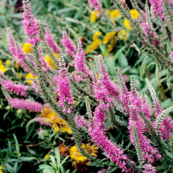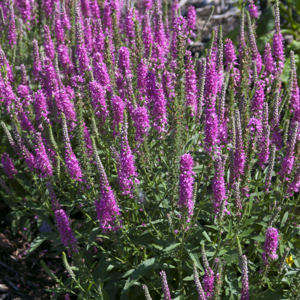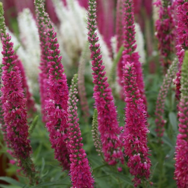The brilliant vertical texture lights up the garden and adds motion and texture to garden beds in the dappled sun! Veronica is showy all summer into early fall much to the delight of your local butterflies! Classic border garden, cottage garden, Rock Garden, and perfect additions to a cut flower garden! Those eye-catching pink blooms are striking against evergreen hedges and burgundy foliage. Use Veronica as a front or back-of-the-border pop of color that catches the eye!