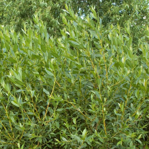 Flame Willow is a shrubby Willow that gives you quick screening because of their fast growth. They grow many stems with fine-textured, green foliage that is lighter colored on the undersides. In the fall, the leaves turn yellow, but the real show is the orange-red color on the younger stems.