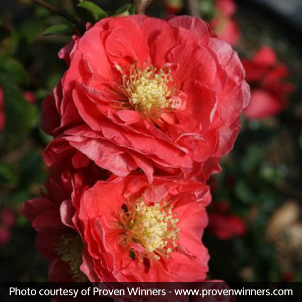 The Proven Winners® Color Choice® Double Take™ Pink Quince (Chaenomeles speciosa 'Pink Storm' PP20920) produces a spectacular early spring display! Their large double flowers with intense pink color will make you look twice or do a "Double Take"! Early emerging pollinators too will have their heads whip around as well!