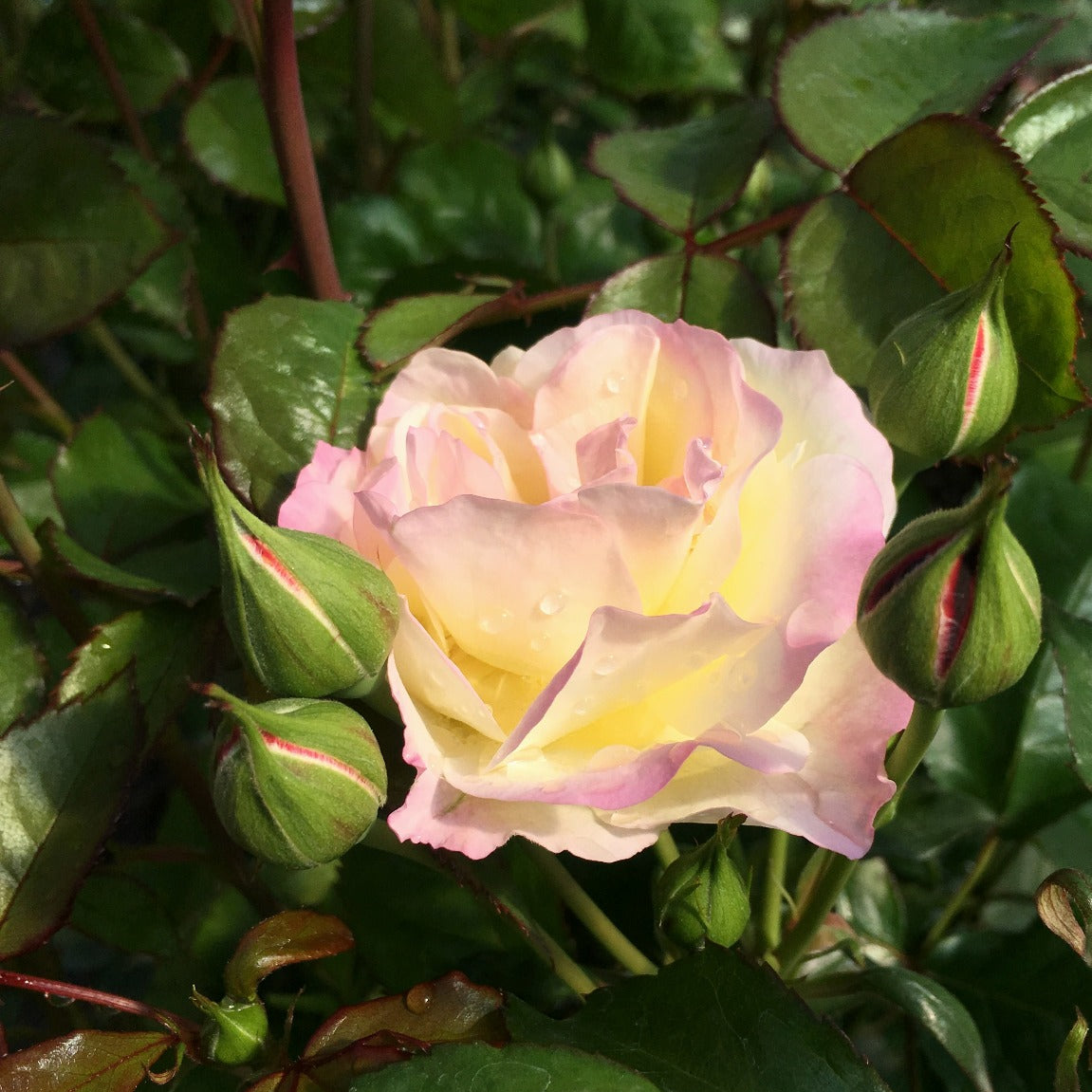 These easy-care modern Rose bushes are deciduous shrubs that appreciate being planted in well-drained soil. It also loves soaking up as much sun as it can so planting somewhere in full sun is a good idea. Site selection is actually the most important aspect. Making sure the soil is well draining is important as well! Growing Roses outdoors or in containers requires a consistent schedule of supplemental moisture. Don't forget to add a thick layer of Mulch for insulation and moisture retention.