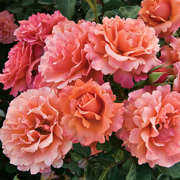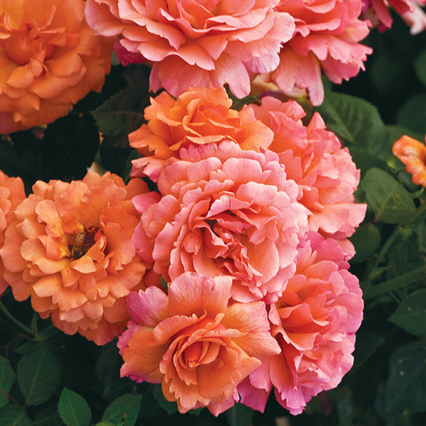 The frilly and lusciously hued blossoms that smother the Easy Does It™ Floribunda Rose Bush (Rosa 'HARpageant') are rampant, free-flowering blossoms! All in the delightfully juicy shades of peach, apricot, mango, orange and antique pink- swirl together on these fully double, fragrant blossoms!