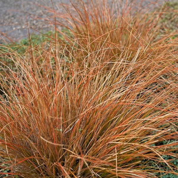 Cappuccino Carex is small in stature but makes a big impact. The russet reddish-brown foliage looks great all season. The color adds depth to deep greens and pops beside perennials, and showing off in Rock Gardens. Looking fantastic with orange, yellow, red, and russet plants and shrubs, and especially show off against dark evergreen shrubs!