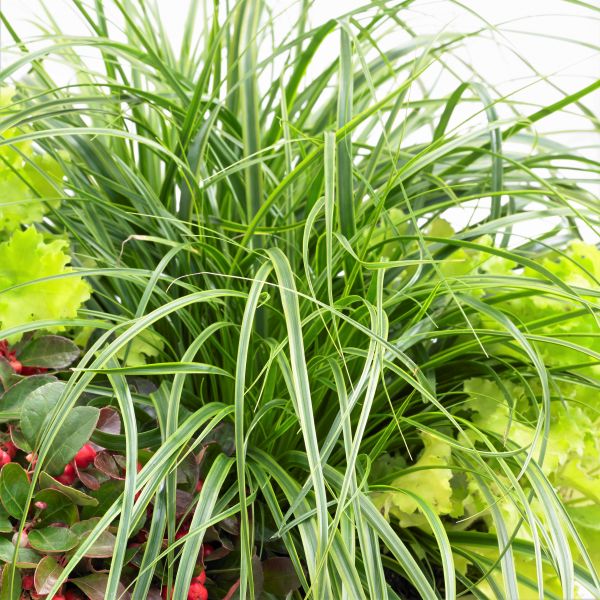 Everlime Variegated Sedge makes a magnificent groundcover or try it in your favorite container as both a 'thriller' and a 'spiller'! It will bring light and texture to any garden combo! The distinctive green foliage with lime margins really sets off nearly every other color and plant!