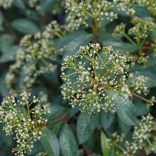 This exciting new broad-leaved evergreen cultivar offers dark green, thick and leathery leaves and pretty white blooms in springtime for butterflies and beneficial pollinators. Plant with their pollination partner, Yin® David Viburnum, and you'll provide brilliant blue berries for songbirds in autumn.