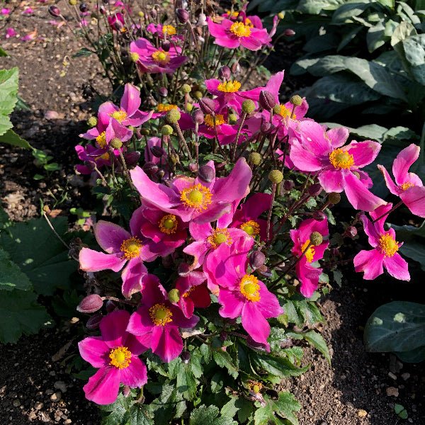 A vibrant raspberry-pink Japanese Anemone for late-season color, the Fantasy™ Red Riding Hood Japanese Anemone PP# 29897 (Anemone hupehensis 'Red Riding Hood'), also known as a Windflower, is a charmingly compact variety of Japanese Anemone that brings a punch of vivid raspberry-pink color to the late summer and fall garden.