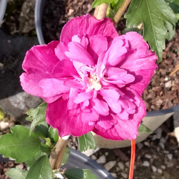 Raspberry Smoothie™ Althea puts on quite a show from mid-summer into fall. The flowers are extra showy versions of your typical Hibiscus family, but these double (almost triple) blooms closer resemble Carnations or small Peony flowers with a creamy mix of raspberry hues! The fine textured dark green leaves are neatly serrated and stay clean looking all season long.