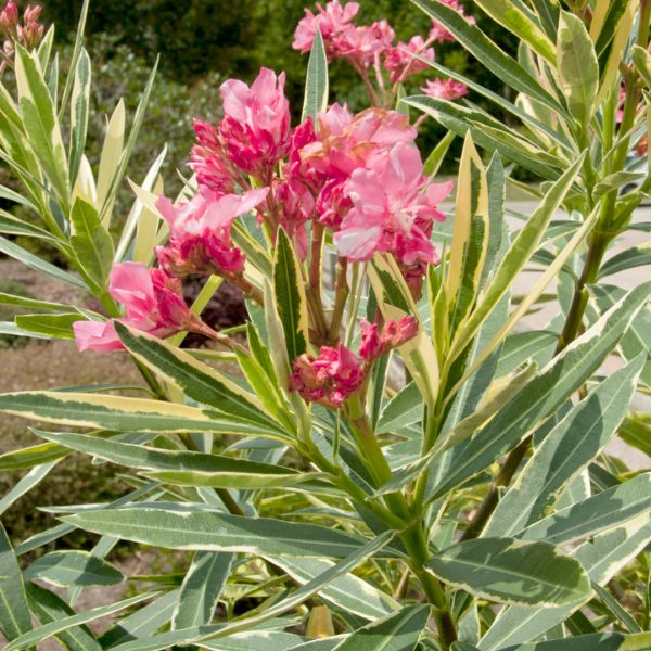 Oleanders are fast-growing and easy to care for broadleaved evergreens which tolerate salt spray and drought, and their flowers are wildly showy which makes them appealing landscape plants. However, all parts of this plant are highly toxic. Wear gloves and long sleeves when working with these plants, and dispose of trimmings and raked leaves away from your property.