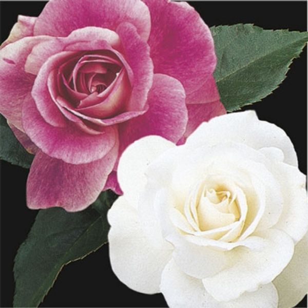 This aptly named "Two-fer" truly gives gardeners a two-for-one deal in terms of color! Two different Rose bushes grafted onto one straight and sturdy, 2-3 foot tall Rose standard. Combining the Brilliant Pink Iceberg & Iceberg Rose Tree has both creamy-white and deep-pink blossoms set high atop deep green foliage!