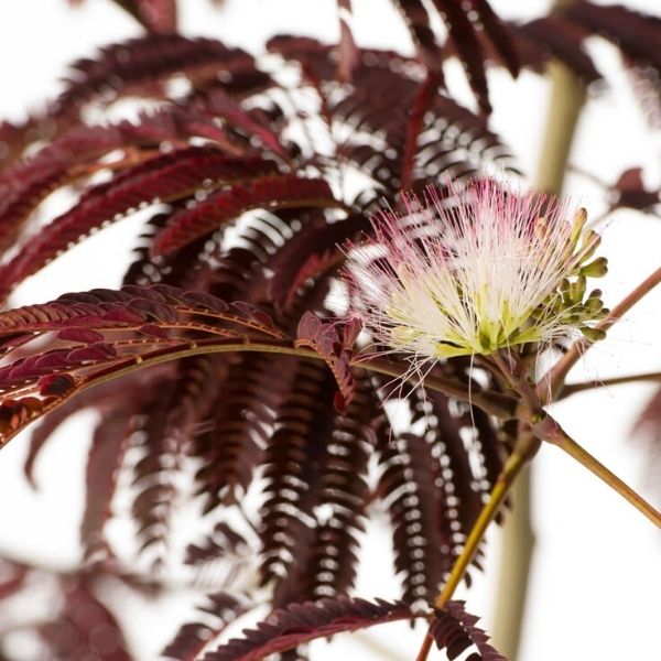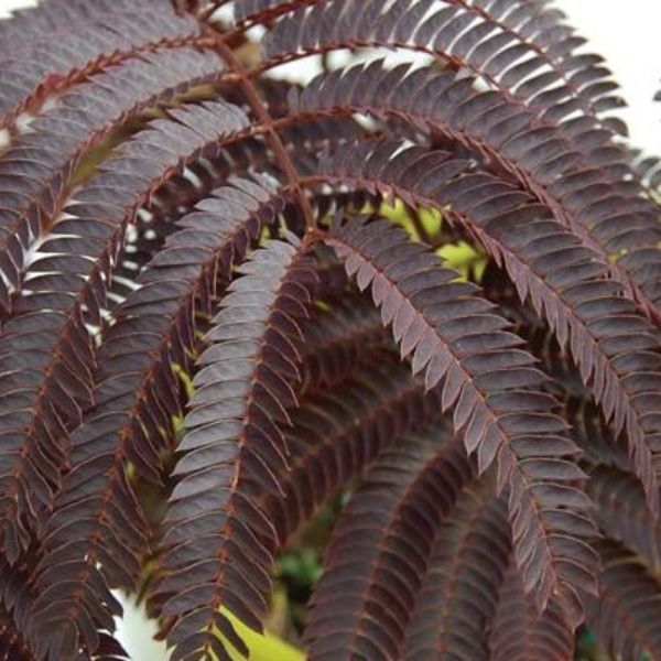 Establish an exotic landscape feature the easy way with a daring, designer cultivar of Silk Tree! Chocolate Fountain Mimosa tree (Albizia julibrissin 'NCAJl' PP# 25813) features stunning, deep burgundy foliage and showy summer blooms each year in the summertime.