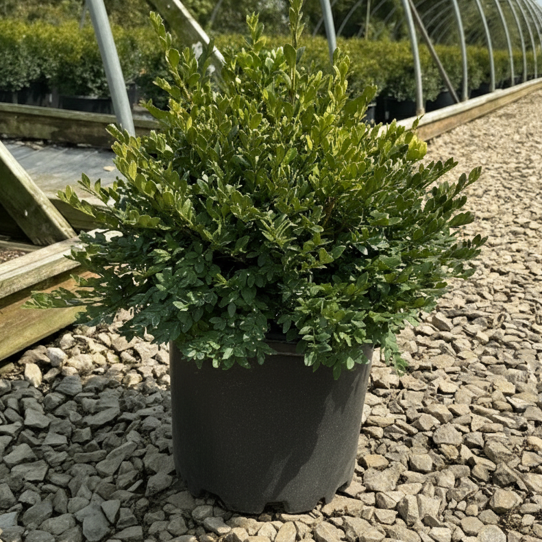 Green Velvet gives you evergreen structure without the high maintenance. Its dense, compact growth creates perfect low hedges and borders without constant trimming. The glossy green foliage stays vibrant through winter when most plants look drab.