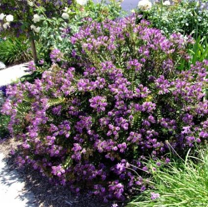 If you live in a warm winter area Zone 8 -11 and want to try a spunky hedge, give 'Patty's Purple' Hebe a try!