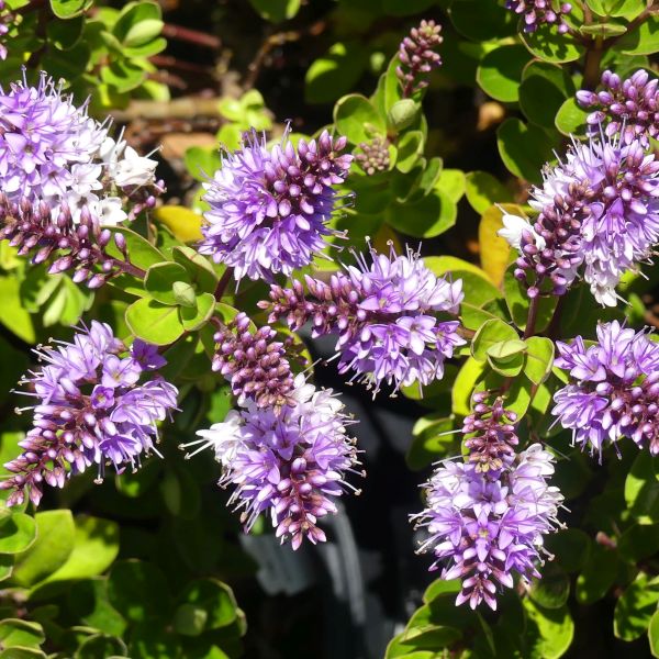 Patty's Purple Hebe thrives in warm Zones, taking on the same basic shape seen in the timeless boxwood shrub. This beautiful shrub is a bit of a sun worshiper, it loves hot, hot sun, but it also likes a little shade too, much like its boxwood counterparts. Use it as a border or hedge, or pot the Patty's Purple Hebe in containers for a more formal look on the patio, deck or porch.