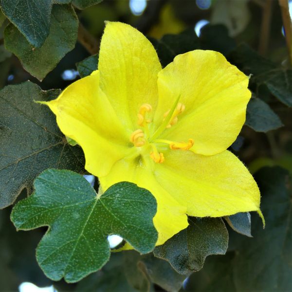 Flannel Bush. The name conjures up cozy shirts and crackling fires, sweet hot cocoa and melty s'mores. But the reality is that this vining shrub isn't like that at all. It is a super-drought-tolerant California native that sports some of the brightest yellow flowers you've ever seen every spring!