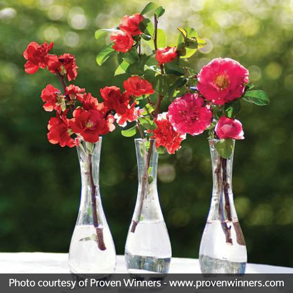The Proven Winners® Color Choice® Double Take™ Pink Quince (Chaenomeles speciosa 'Pink Storm' PP20920) produces a spectacular early spring display! Their large double flowers with intense pink color will make you look twice or do a "Double Take"! Early emerging pollinators too will have their heads whip around as well!
