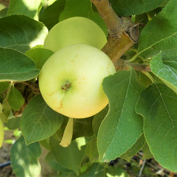 It's not long before the apples follow, with their skin a clear, pale yellow that's greenish, yellow to nearly white.