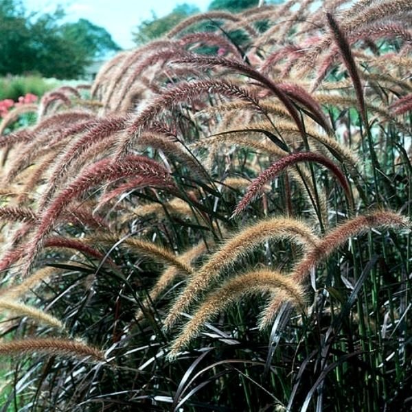 Add a long-lasting dramatic fountain of color for very little effort with Purple Fountain Grass (Pennisetum setaceum 'Rubrum'). Rely on this charming choice for texture, motion and intense hues. These tall stems of Purple Fountain Grass soar above its foliage. They are tipped with foot-long burgundy plumes.