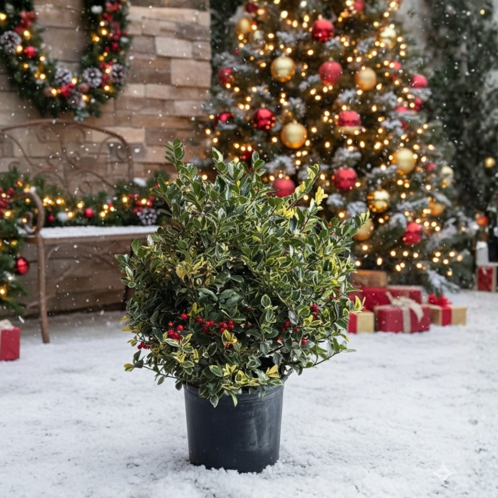 A wonderful workhorse with a flashy side! The Honey Maid Holly, (Ilex x meserveae 'Honey Maid')' is a broadleaf evergreen with a naturally sturdy pyramidal shape and really punches up the curbside appeal of any home or landscape!