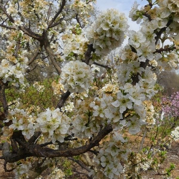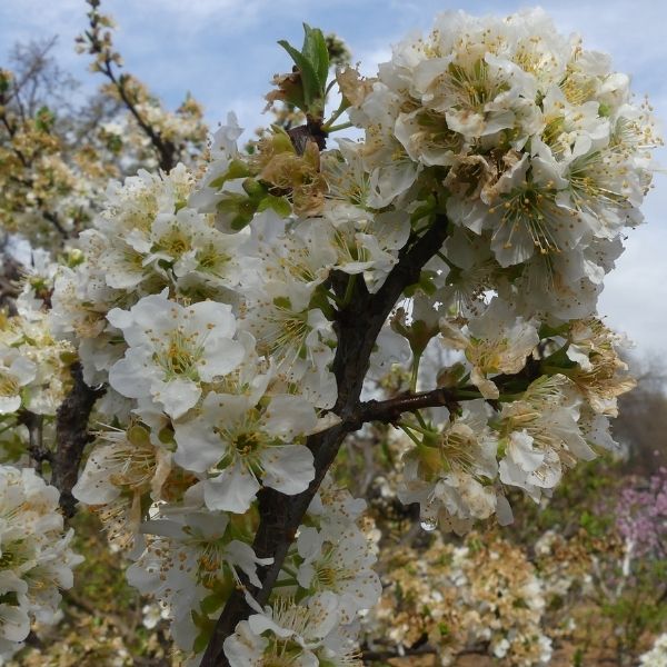 Plums look lovely in groupings, that also lend themselves well to wildlife habitat and shade for you! Shipped with their lowest limbs intact, these are fantastic privacy and hide eyesores with blossoms, lush leaves and attractive dark fruit! Create orchards and groves if you have the room, or use as double-duty hedgerows and windbreaks when allowed to reach full size.