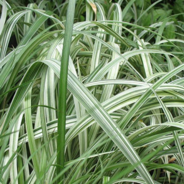 'Silver Dragon' can be paired with large-leafed, shade loving varieties like Heuchera, Elephant Ear and Hydrangea to set off the narrow, grass-like foliage!
