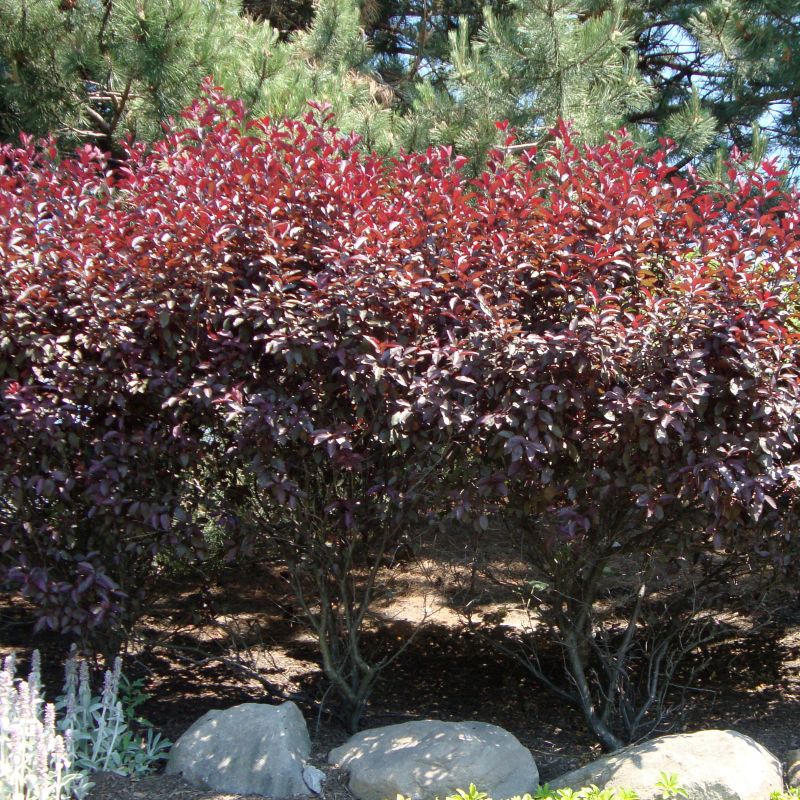 The Purpleleaf Sand Cherry is a dense-growing shrub that reaches an impressive size for a shrub if allowed to grow naturally. However, you can easily prune it to stay within a desired size. It's versatile and can be trained into either a single-stem small tree form, or used as a natural shrub with lower branches. Either way, this is a highly ornamental plant that is worthy of an esteemed location in your landscape!