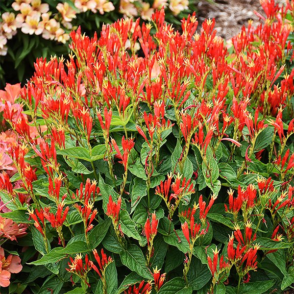Fantastic upright, wedge-shaped foliage, boast sprays of tubular, orange-red blooms with yellow tips and star-shaped openings!
